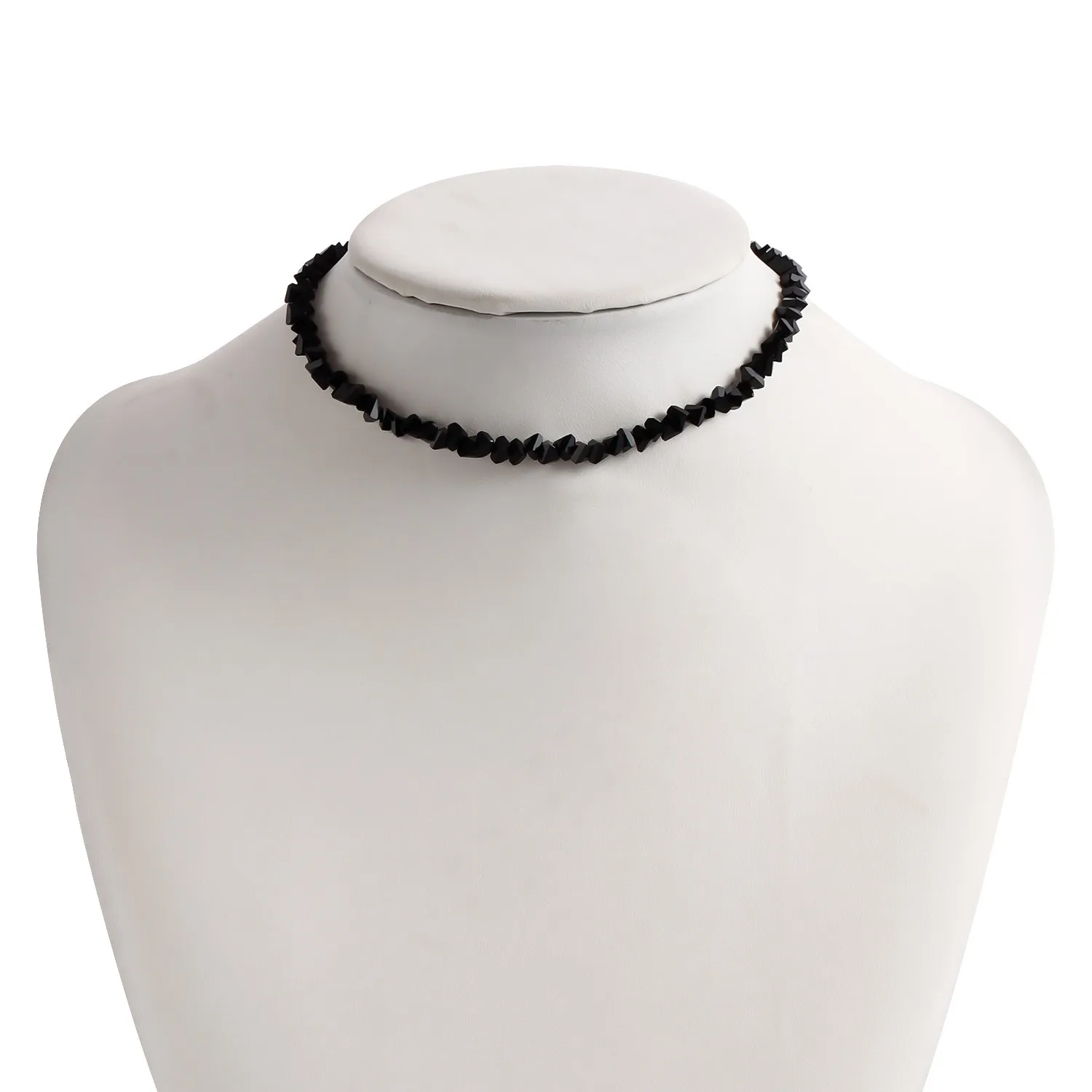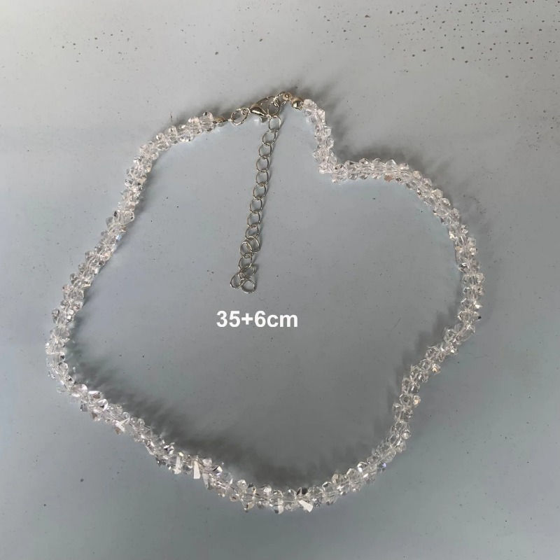Colar Gargantilha Feminino de Miçangas Irregulares com Cristal de Vidro Coreano